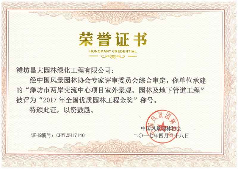 全國優(yōu)質(zhì)園林工程金獎