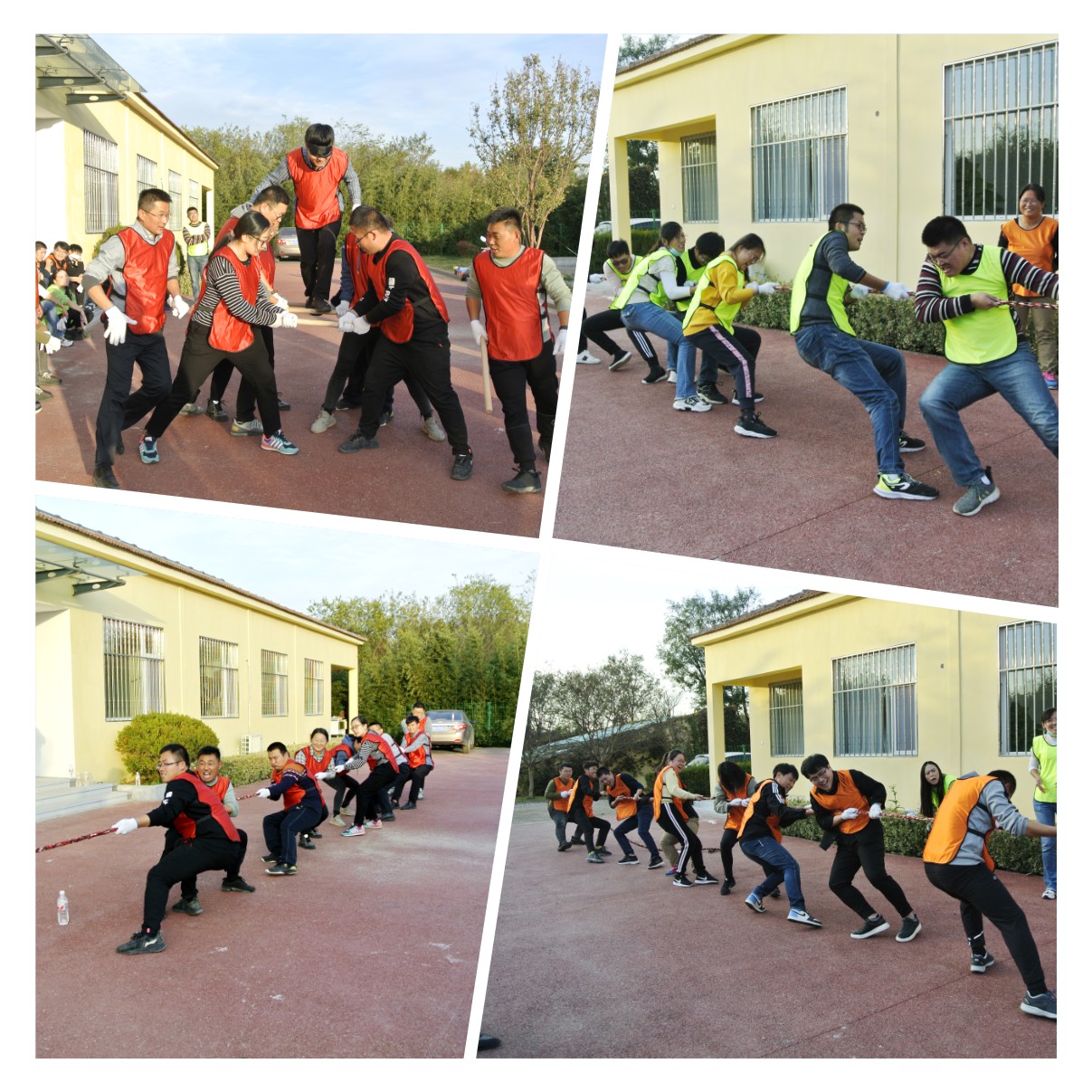 本次趣味運(yùn)動(dòng)會(huì)設(shè)有跳大繩、穿越電網(wǎng)、車(chē)輪滾滾、合力建塔、袋鼠跳跳、信任天梯、拔河七個(gè)比賽項(xiàng)目。參賽隊(duì)員全部打亂順序混編成四組,并推選出一名隊(duì)長(zhǎng)。“跳大繩”作為傳統(tǒng)比賽項(xiàng)目?jī)?yōu)先登場(chǎng),由兩名隊(duì)員搖繩把握節(jié)奏,跳繩隊(duì)員快慢有序穿梭于繩索之間,隊(duì)長(zhǎng)統(tǒng)一指揮、技術(shù)協(xié)作奠定了取勝的關(guān)鍵。“穿越電網(wǎng)”項(xiàng)目發(fā)揮的是隊(duì)員們?nèi)翰呷椭腔哿α康娜诤?,比賽異常激烈。?ldquo;車(chē)輪滾滾”項(xiàng)目環(huán)節(jié)中,各隊(duì)隊(duì)員們齊心協(xié)力,保持口令一致、步調(diào)一致、節(jié)奏一致,穩(wěn)步前行地沖向終點(diǎn)。合力建塔、袋鼠跳跳、信任天梯、拔河等項(xiàng)目也在各隊(duì)的拼搏和歡快中逐一完賽。